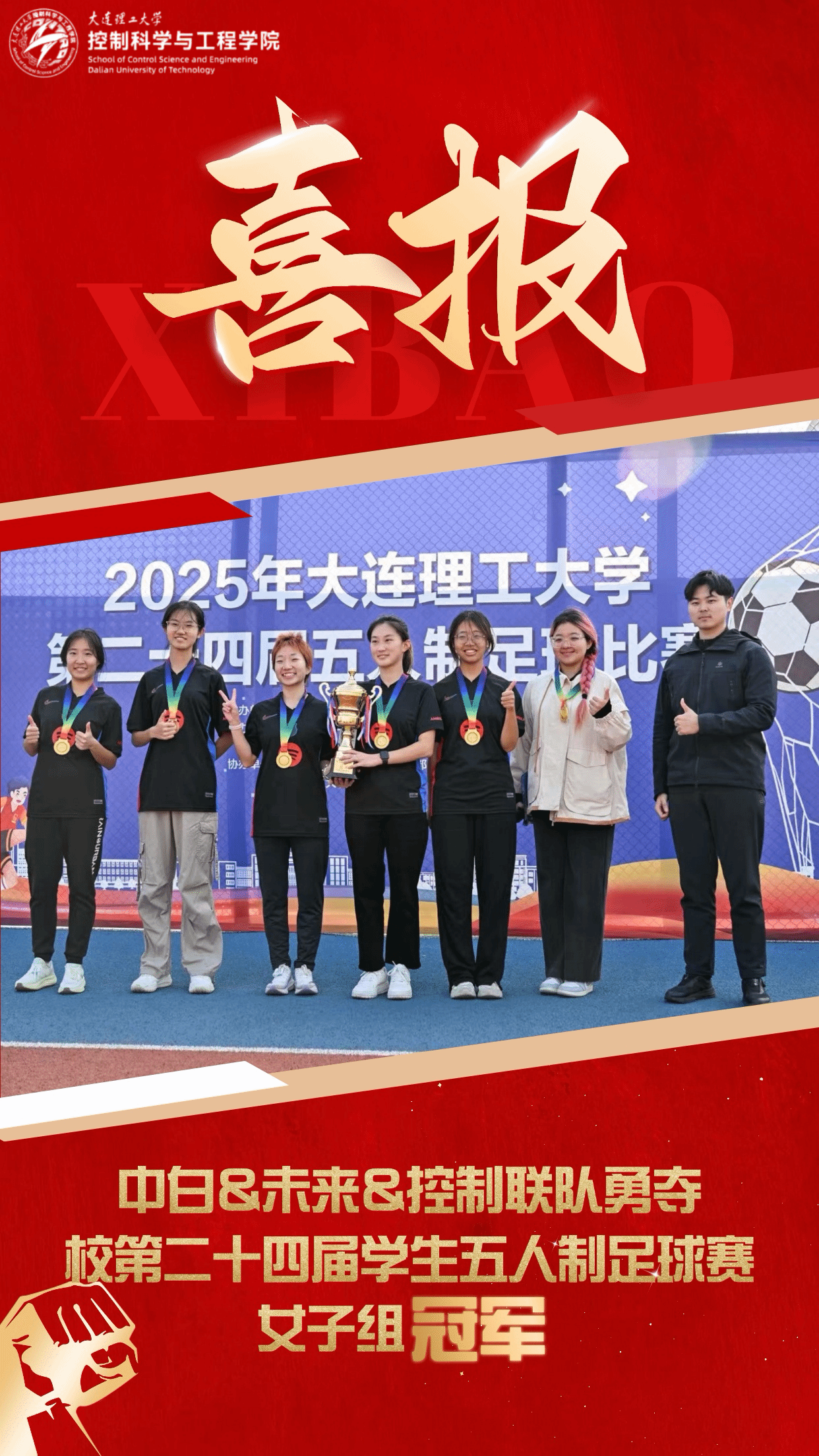 冬日暖阳映照绿茵,火博体育 第二十四届五人制足球赛圆满收官。火博体育 的足球健儿们满怀热爱,以激情与汗水在赛场上奋力拼搏,捷报终传。控制中白未来联队勇夺女子组冠军!控制计科联队斩获男子甲级组亚军!