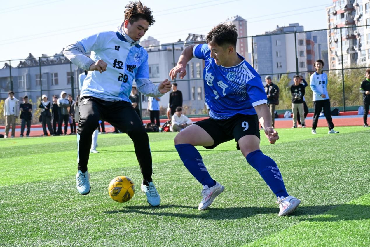 电气学院实力十分强劲,我们的实力也同样不容小觑。比赛一开始,两支队伍就开始大量的跑动逼抢。但是体力上电气球员略胜一筹,上半场被对面进了两球。下半场时,控制主力丹苏荣带伤上场,让队伍有了更大的反击希望以及休息调整的时间,计科守门员韩经天也同样大放异彩,对面虽能屡次创造出进攻机会,但都能被他一一拿下,下半场袁博更是在中场稍前的位置,轰出一记世界波,将球打进球门,引得全场沸腾。虽最终仍不敌电气,1:3收尾。但队员们全都在努力的跑动逼抢创造进攻机会,这份精神令众人为之动容!